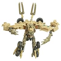 (More customer reviews)Ah, Bonecrusher! Such a short role in the movie, yet so iconing as to be one of the more memorable scenes: "rollerblading" amongst traffic and body-checking a bus into halves - I mean, that's got to stick! Bonecrusher is quite a nice deluxe figure that transforms relatively easily and without too much fuss into a robot that is arguably the least humanoid of all the deluxe figures (with perhaps the exception of Scorponok). With the arms pulled all the way out, he does appear quite fearsome, an effect added to by the animal-like head as well as the extra appendages on his back.