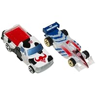 (More customer reviews)Hello everyone! Ironhide and Mirage are back in a basic two-pack. These two Transformers are approximately 2 inches in length (in car/disguise mode) and height (in robot mode). These two Transformers are like the other 8 Spy Changers, they have a really easy transformation from car to robot mode and back. Each comes with a hand held laser gun. Ironhide's resembles a cutter rifle, while Mirage's looks like an advanced machine gun. Ironhide's vehicle mode looks like an old Ford Pickup, with a black and white cow-skin paint job with a bull face silhouette on his hood. In robot mode, he has a bulky chest, but is otherwise pretty cool, with an Autobot symbol on the roof of the cab. Mirage is the best of the two because he looks like an Indy Racecar. He has his Autobot symbol near the nose of the car. In robot mode, Mirage is slender, with a slightly sleek look. Cool robots, get these two and the rest of the small guys, known as the Spy Changers. Side note for Transfans, these guys are compatible with Scourge's (or Black Convoy as he is known as in Japan) base, because they were originally made for it.