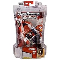 This edition of Override is a Deluxe Class (6") figure!Transforms from Cybertronian race car to Autobot and back! Includes a special Spark Key that unlocks a hidden weapons system!